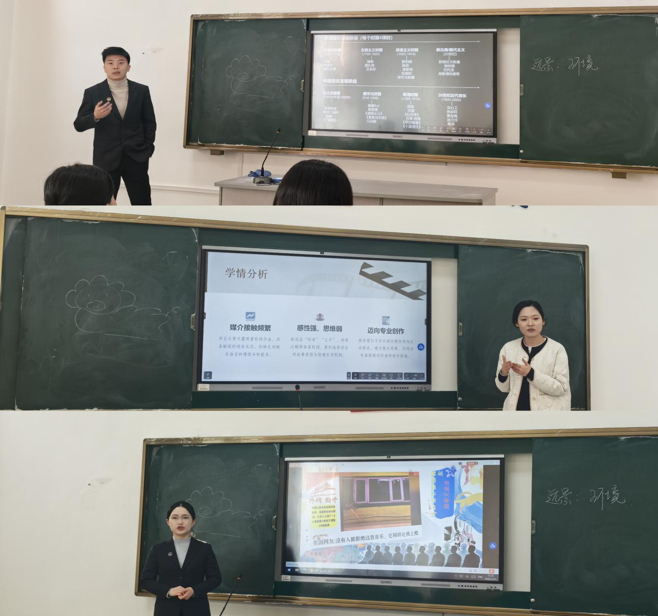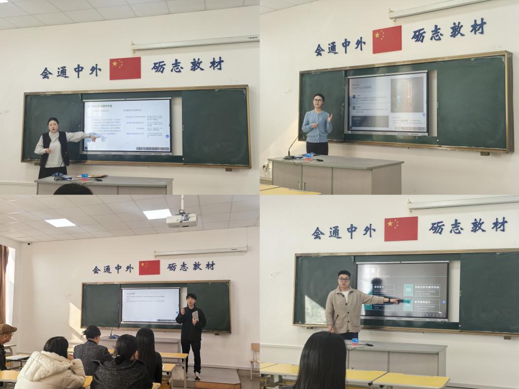张宇莹、夏玥、田婉婷、李斯奇、付梦远、申菊花、王久玖7位青年教师依次登台,分别进行10分钟现场授课。教师依托数字工具等教学手段,将课程思政与专业前沿有机融合,现场气氛热烈。