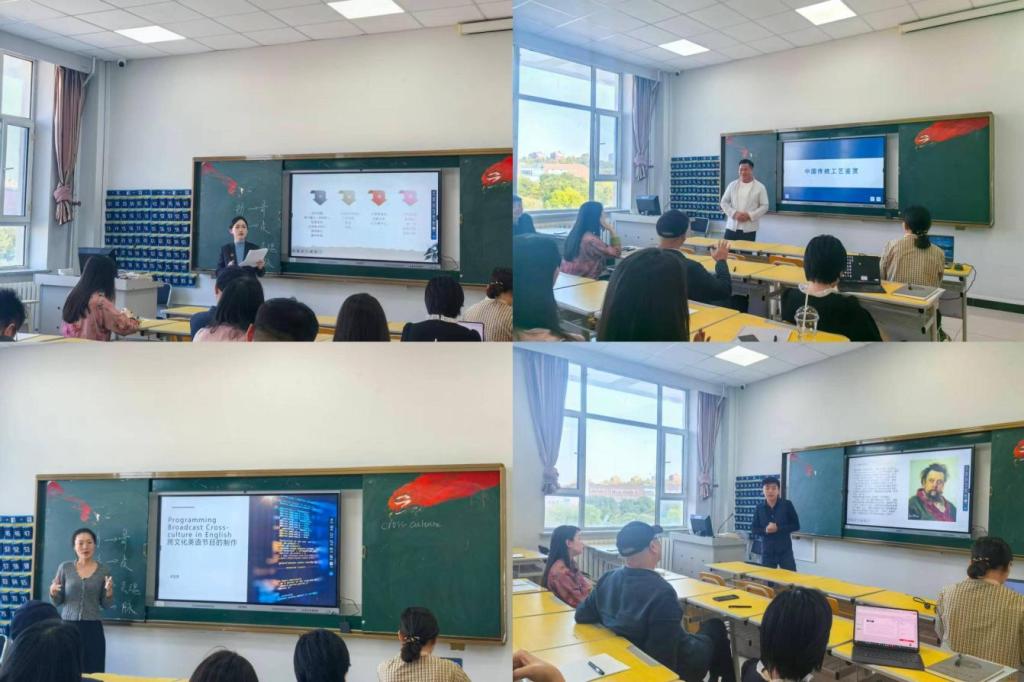 9月29日下午2:30,在敏行楼411教室,国际艺术学院举行“精彩一课”展示活动。申菊花、李宜霏、王学谦、王久玖4位新入职青年教师依次登台,分别以《舞蹈与形体训练》《英语节目采编播实务》《景泰蓝工艺基础制作》《俄罗斯音乐鉴赏》进行20分钟现场授课。四位教师依托数字工具等教学手段,将课程思政与专业前沿有机融合,现场气氛热烈。